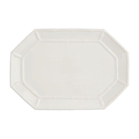 A white platter is a staple for entertaining - it goes with all different linens, colors and holiday decor. Best of all, food looks most visually appealing on white. This stoneware platter features bamboo textured detail which adds some interest without being overpowering.