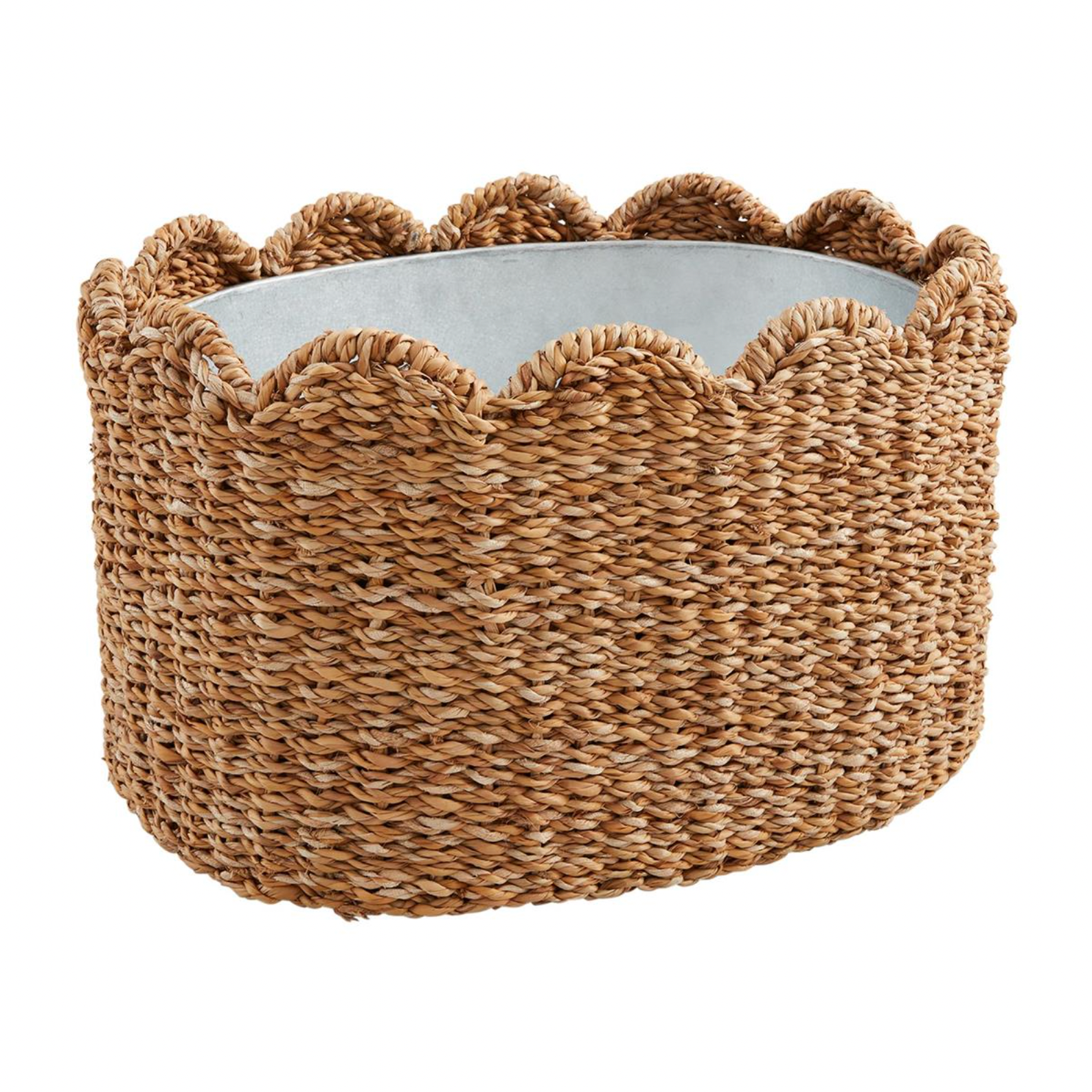 This adorable, on-trend, seagrass scalloped drink tub has a tin liner to hold the ice. Such a fun thing to pull out when entertaining to keep your beverages cold.