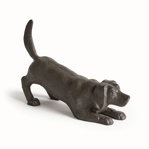 Tail up & ready to playfully pounce, this sculpture perfectly captures a loyal canine companion in their most endearing pose. This bronze sculpture is a great conversation starter tucked into a bookshelf, on a stack of books on an ottoman, or anywhere.