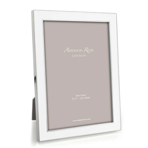 This beautiful white enamel and silver picture frame is perfect for both black and white or color photos in classic or contemporary settings. It makes a lovely gift for a wedding, baby shower or birthday. Able to stand both Landscape and Portrait.