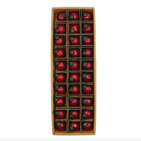 These little red ornaments are perfect for a tabletop tree or displayed in a bowl or jar on your cocktail table or console.