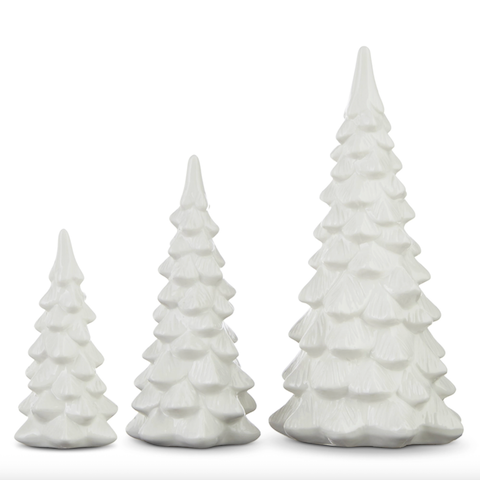 These beautiful white trees make a festive statement grouped together on a mantel or console table.