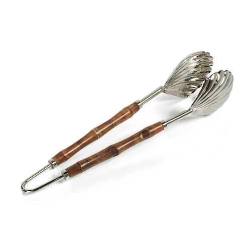 Serve your dish up in style with this this classic serving tong with bamboo handle and seashell heads.